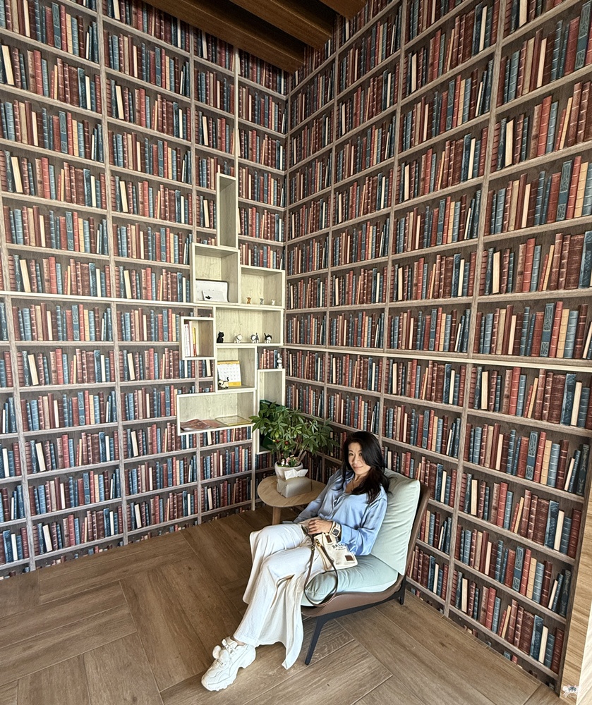 想要跟老闆聊天(?)可以坐有可愛動物椅背的吧台區,至於假書牆的擺拍單人座真的想坐在這也是可以啦。