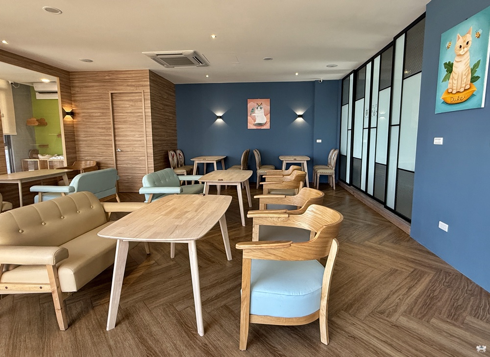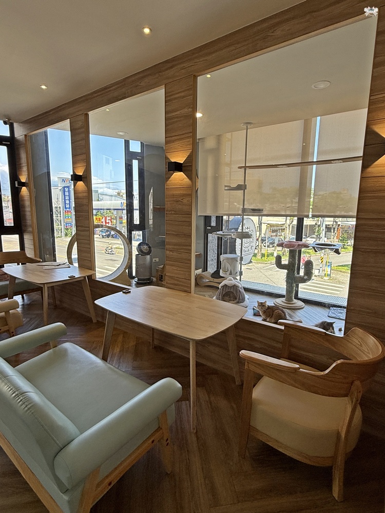 兩層樓寬敞漂亮的室內空間有電梯喔,提供飲品與輕食,是可以開心喝咖啡兼賞貓的花蓮貓咪咖啡。