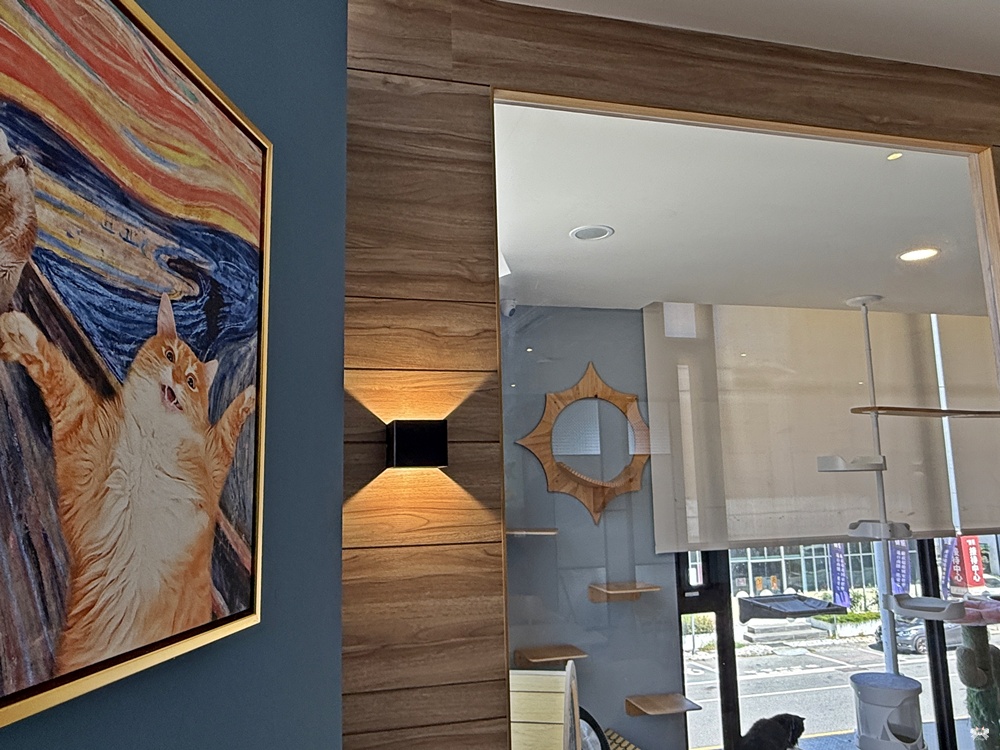 這幅最可愛了啦!這是致敬孟克的吶喊吧!我想起2019年圓山花博的貓.美術館展覽,很多被喵化的名畫!